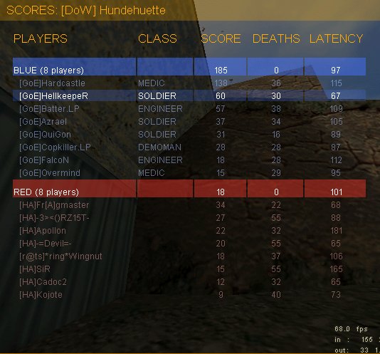Also gewartet, bis die Hälfte von HA enclave gezogen hatten und wieder raus auf den Server. Nun gut, hier hatten wir dann doch ein wenig mehr Erfahrung als HA, so dass wir schnell ein Punkteverhältnis von 10:1 herstellten und das auch durch die Map hindurch halten konnten. Hier muss man Hardcastles Leistung hervorheben, der die Off quasi im Alleingang schmiss.