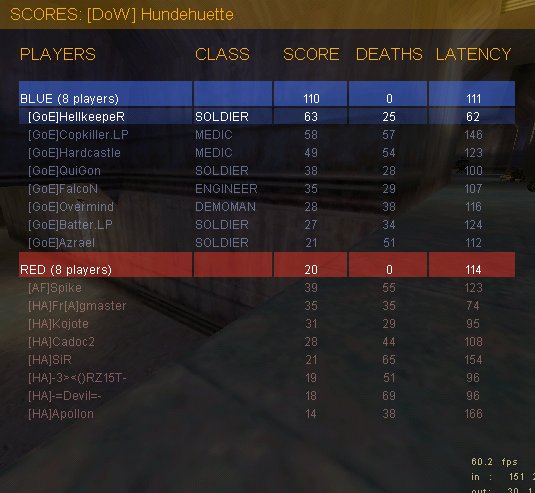 9 Caps Vorsprung...GTFL hat ja Gesamtcap-Regel. Als shutdown_l schön locker angegangen, nicht zu verbissen gefighted und viel gelacht. Tjo, dadurch konnte HA halt zweimal cappen, wir nur einmal (weil wir unbedingt vorne ne Flag haben wollten, haben wir uns nicht wirklich um unsere SGs gekümmert ^_^). Nun gut, Drop vom Server und gut ist...tjo, denkste. Cup ist anders als Liga, hier zählen Mapwins.