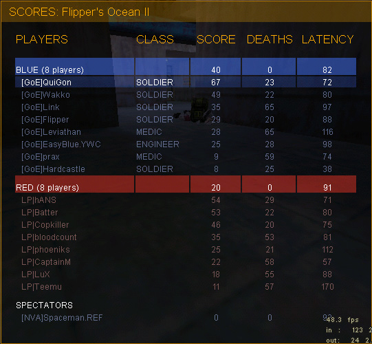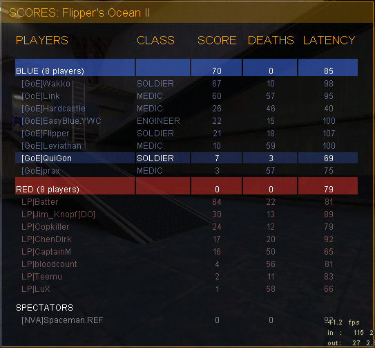 War jedoch einmal die SG down, dann kamen wir meistens auch an die Flagge ran - zweimal bin ich sogar an der lvl3-SG vorbei in den Flagroom, um die Flag rauszuwerfen. ;)