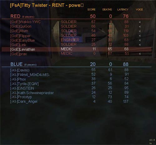 Bleibt vielleicht noch zu erwähnen, daß zu Beginn des Clanwars leichte Unstimmigkeiten über die Aufteilung der Spieler auf die Teams herrschte ;)