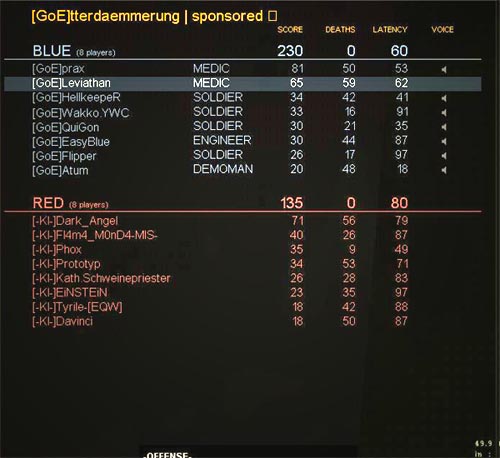 Aber da Höllsen, der für D00m in der Offense einsprang nicht versuchte, die Flagge zu capen, gewannen wir auch hier mit gutem Vorsprung ;P