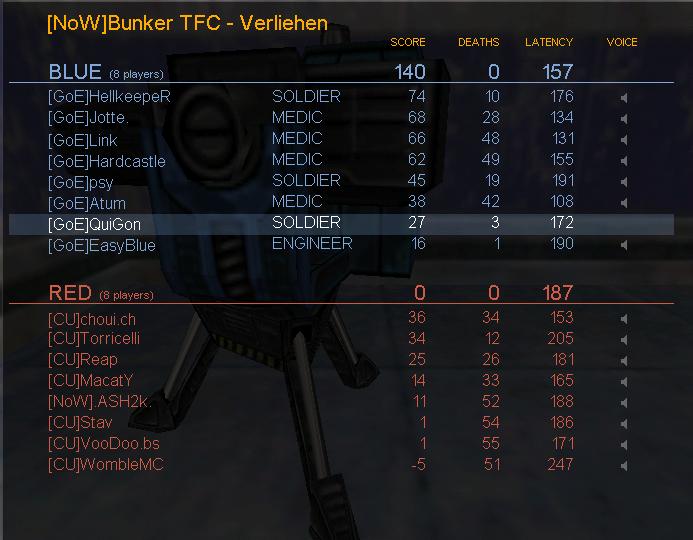 So artete Well zum Schluss in eine fast-Fulloff Strategie von Seiten CU aus, während wir uns mit Snipern in deren Tower zu verschanzen versuchten.