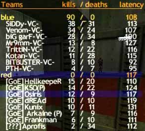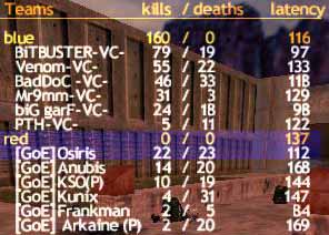 Los gings mit well, und wir hatten sogar eine Offense. Daß diese nicht allzu erfolgreich war, brauche ich ja nicht zu erwähnen, denn lange Zeit stand VC auch als einzigster .de Clan ohne Gegencap da, bis es schließlich in einem IGL-Game passierte.