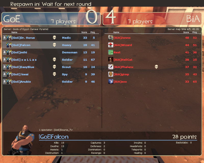 Die erste Map wurde cp_badlands gespielt, wo wir den Gegner gut weggedaddelt haben und mit 4:0 besiegten. Leider von mir kein Screen verfügbar.
