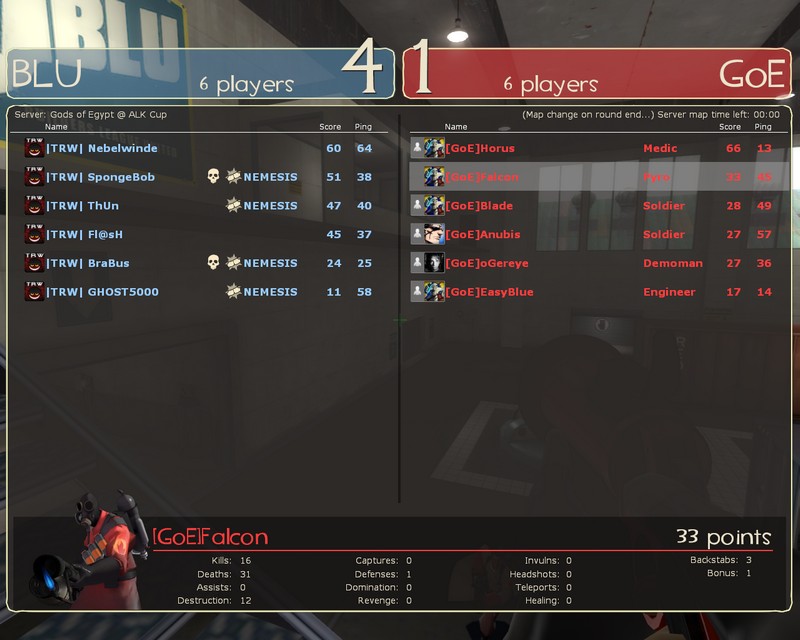 Der Gegner war nicht mehr ganz so stark, vom extremen Sniper mal abgesehen. Dieser hat uns auf der ersten Map, diese war ctf_turbine, ordentlich die Laune verdorben. Kein zitterfreier Schritt auf dem Yard war hier möglich. Zack-Bumm-Knall und tot. ;-)