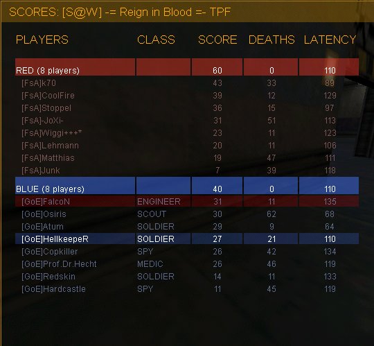 Weiter ging es mit SD2. Nachdem beide Seiten sich nochmal beschnupperten, ging es bis 20:20 Cap auf Cap, dann zog FsA auf 40:20 davon bis wir wieder ausgleichen konnten. Allerdings gelangen FsA noch 2 Caps und die Map war vorbei. Wie konnte das passieren? Tja, unsere üblichen Probleme auf SD2 und noch ein paar dumme Zufälle. So "half" Atum den gegnerischen Spies 2-3 mal per Rocket in den Arsch auf die Flag und als diese dann rauskamen hatte ich das Talent, mit einer Rocket unter deren Füsse die Carrier im Eiltempo die Rampe runter zu befördern. Das soll sich jetzt nicht so anhören, als ob wir nur durch Pech verloren hätten, nein, FsA war hier schon besser, es war, wie ich vor dem Match sagte, dass der Clan, der sich einen Fehler erlauben würde, verlieren würde. Wir haben zu sehr auf Defensive gesetzt und dadurch es unserer Off unnötig schwer gemacht, zu cappen. Ein taktischer Fehler, der sich gerächt hat.