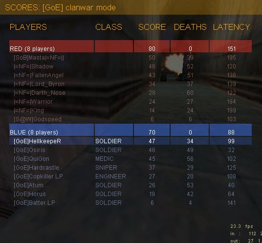 In den Stats stehts als unentschieden, in der ESpL wärs das auch, als Friendly ists aber nen Loss, weil wir zu doof waren, Openfire in den Griff zu bekommen. Der Screenie zeigt zwar 80:70, das war aber nen Serverbug.