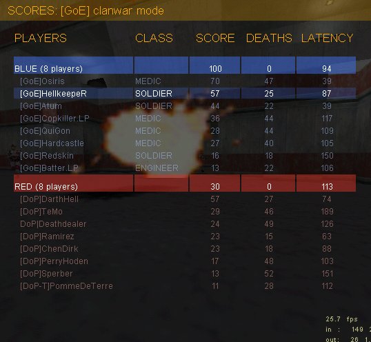 In 2fort crashte mir gleich zu Beginn der BC und ich brauchte 5min, um mich auf die Situation einzustellen. Trotzdem standen wir _relativ_ sicher, aber auch hier wieder zu Ende hin das gleiche Prob: Wir wurden unkonzentriert, 3 Caps DoP... Glücklicherweise glich unsere Off das durch ihre 9 Caps aus, aber trotzdem müssen wir da wohl dran arbeiten :)
