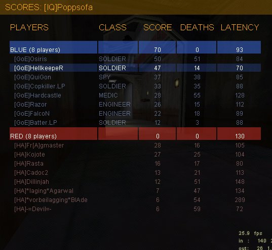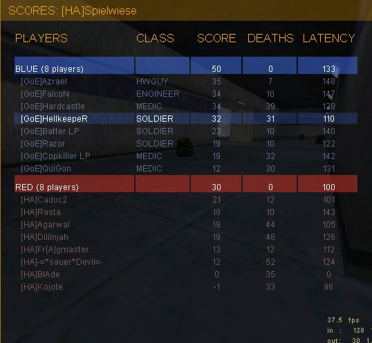 Nach einer kleinen Pause ging es auf dem Poppsofa in der Affenmap weiter, wo wir dann doch die bessere Seite erwischt hatten. Zwar rutschte die Flagge ein paar mal vom Cappoint runter, aber dabei blieb es auch, während ich meine Flagcarrier-TK-Stats theoretisch 7 mal in die Höhe hätte schrauben können :)