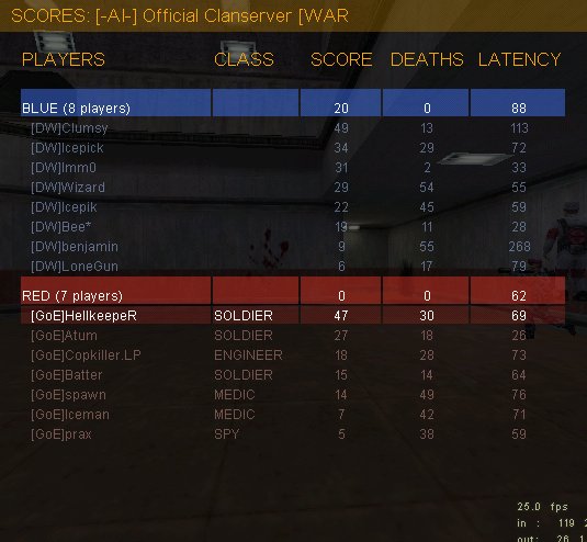 Well, sd2 started out quite well, neither Clan could touch the flag till we did after about 10mins. Then DW changed something in their setup and suddenly hell broke loose. :| Constant pressure and killed SGs till a very skillful sg-kill also took out the engie and one of the medics took our fr-soli out. End of story, 10:0 DW. Second cap I don't know how it happened, it just did. :| We could touch a couple more times but to no avail, 0:20 to DW.