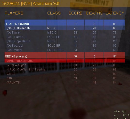 Da der Server doch argh laggte, wechselten wir den Kampfplatz. Allerdings hatte der neue Server dann kein bases_r2 mehr, so dass wir uns mit ner Runde 2fort begüngten, die ich hier aber für nicht weiter kommentierens wert halte. :)