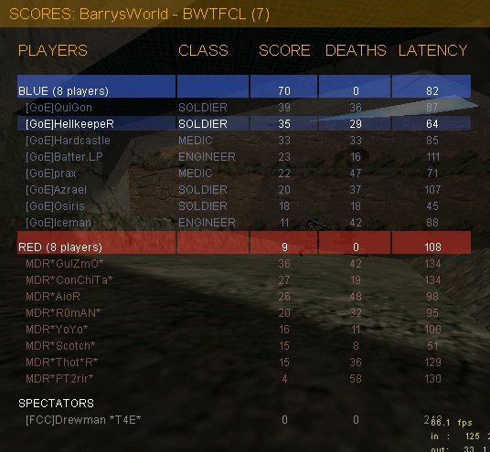 well started out with a quick rush by MDR which our Def diminished, though. We then switched to 4d/4o to get some pressure on their doordef but somehow we couldn't get past it. They however touched our flag a couple of times but to no avail it returned every single time. So this map ended 0:0